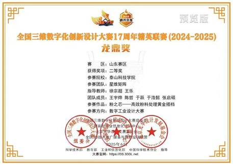 近日,远景学院“梦想+”团队在全国三维数字化创新设计大赛17周年精英联赛(2024 - 2025)山东赛区的激烈角逐中,凭借出色表现斩获二等奖。