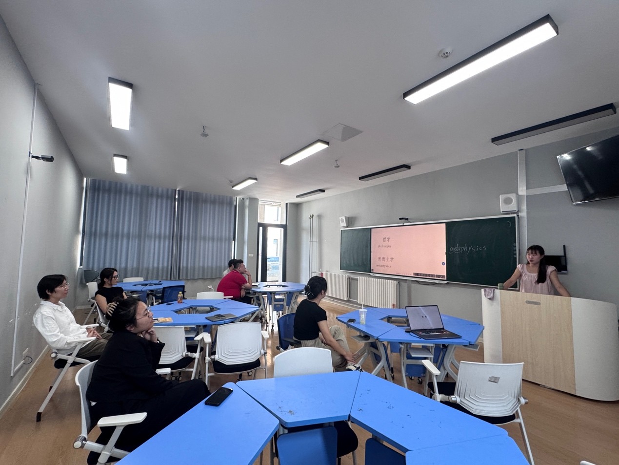 周萌老师以“初识哲学”为主题进行了20分钟试讲,通过生动案例与清晰逻辑,系统展示了课程的教学架构。试讲过程中,周老师运用提问与讨论等多种方式引导学生思考,充分体现了启发式教学理念。