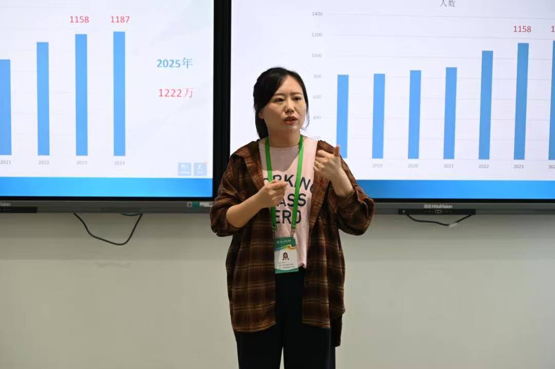 在随后的宣讲交流会上,陈欣老师以详实的数据与典型案例,为学子们深入解读了软件行业的“人才成长密码”。陈老师介绍,双体学院2025届学员高质量毕业去向落实率高达86.85%,其中入职华为、小米、京东、拼多多、国家电网等世界500强企业的学员达49人,进入各类型中国500强企业的学员总数超过100人,标志着学员核心竞争力突出,已成为区域软件精英人才的重要供给基地。在就业质量方面,144名学员初次就业综合年薪即突破10万元,占比57.37%;年薪15万以上高薪学员达51人,占比20.32%;学员平均月薪达到8491元,高于全国本科月收入(6199元)36.97%,薪资竞争优势显著。技术岗位不是唯一出路,企业更需要‘懂技术+懂业务+懂沟通’的复合型人才。”陈欣老师的话,打破了不少非技术专业学子的“就业焦虑”。