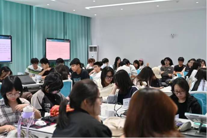 “不同于传统课堂,我们的培养核心是‘让学生带着职场问题学技术,带着技术能力闯职场’。”活动伊始,双体软件精英产业学院的陈欣老师便以“行业向导”的身份,带领学子们开启“沉浸式”探访。在实训基地,企业化的工位布局、实时滚动的项目需求看板、写满代码逻辑的白板,瞬间将“职场场景”前置——几名双体学员正围绕“电商平台订单模块优化”展开讨论,从需求分析到技术选型,分工明确、节奏紧凑。“这和我想象中的‘埋头写代码’完全不一样,团队协作和沟通居然这么重要!”远景学院2023级计算机科学与技术专业的方一鸣停下脚步,认真记录着学员们的讨论要点。