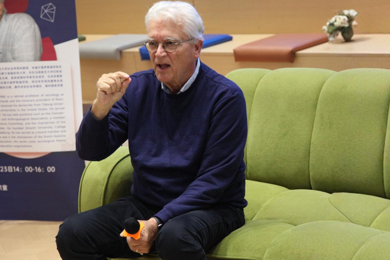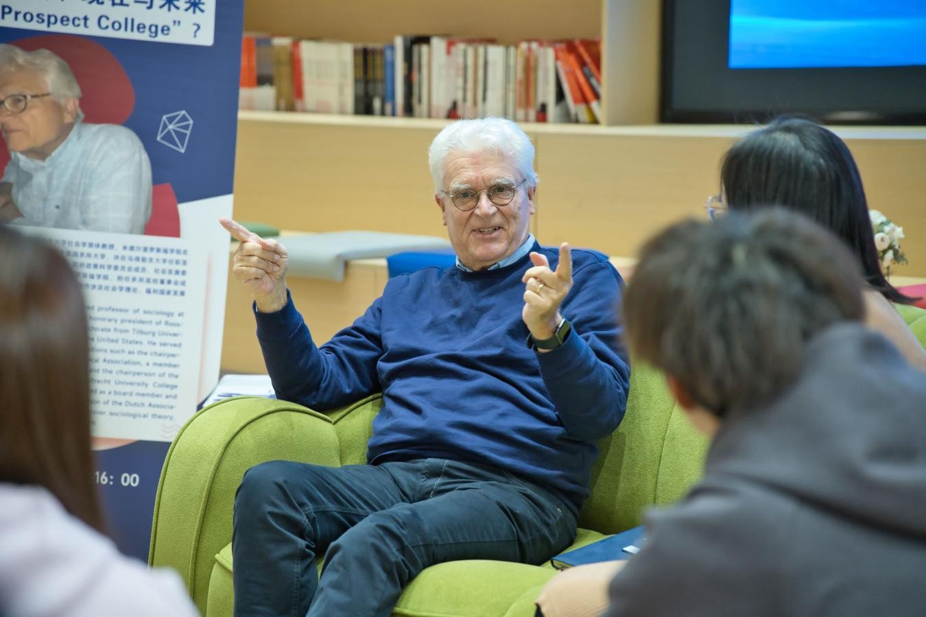 2025年10月23日下午,敢当书院201室里暖意融融,第12期“开讲啦之名家面对面”如期与同学们相遇。这次活动邀请到荷兰罗斯福学院创始人、远景学院名誉院长Hans P.M. Adriaansens教授,以“远景的过去、现在与未来”为主题,带领在场师生走进远景学院独特的育人世界,解锁藏在时光与实践里的教育智慧。