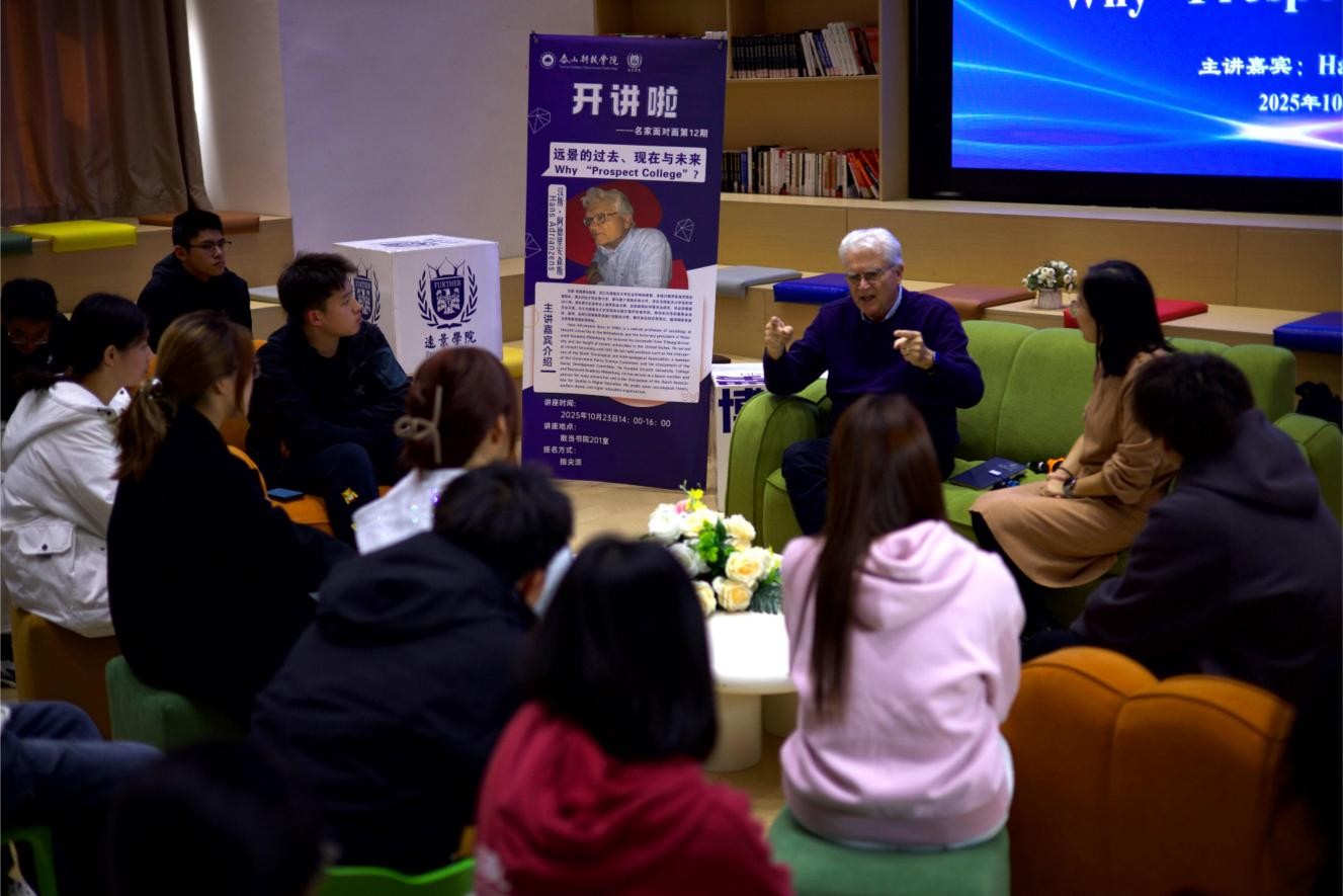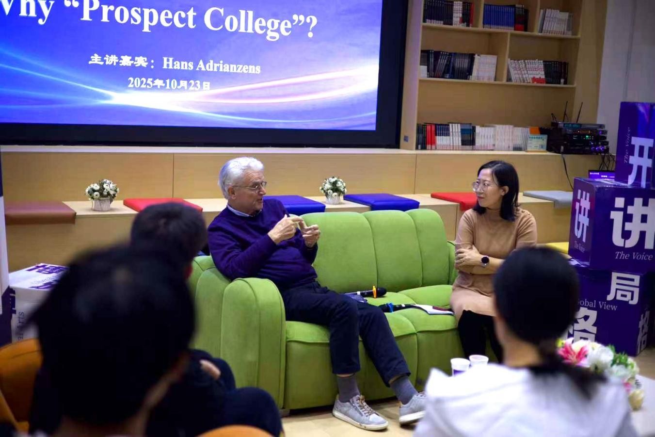 活动伊始,Hans教授从自己的经历说起,将远景学院创建时的故事缓缓道来。初次与彭鸿斌博士交流时,“在中国办一所真正的文理学院”这一想法,瞬间打动了他。这是国内高校首次尝试将西方文理学院的个性化培养模式,与东方特有的人文浸润氛围相结合,这样跨越国界的教育创新,让他毫不犹豫地投身其中。
