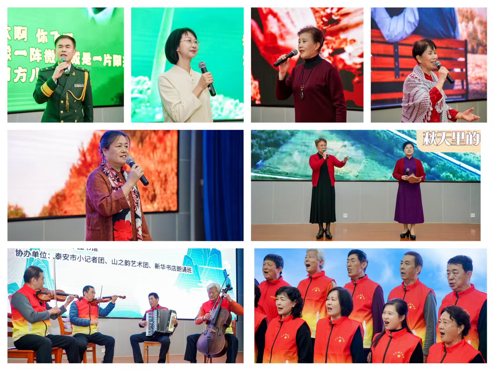 之后,他们又带来了小合唱《花儿与少年》,欢快的节奏让现场洋溢着青春的气息。新华书店朗诵班的学员们也不甘示弱,再次登台朗诵了《老有老的骄傲》《南方北方》以及《秋天里的中国》,用真挚的情感描绘出了生活的多彩画卷与祖国的壮丽山河。
