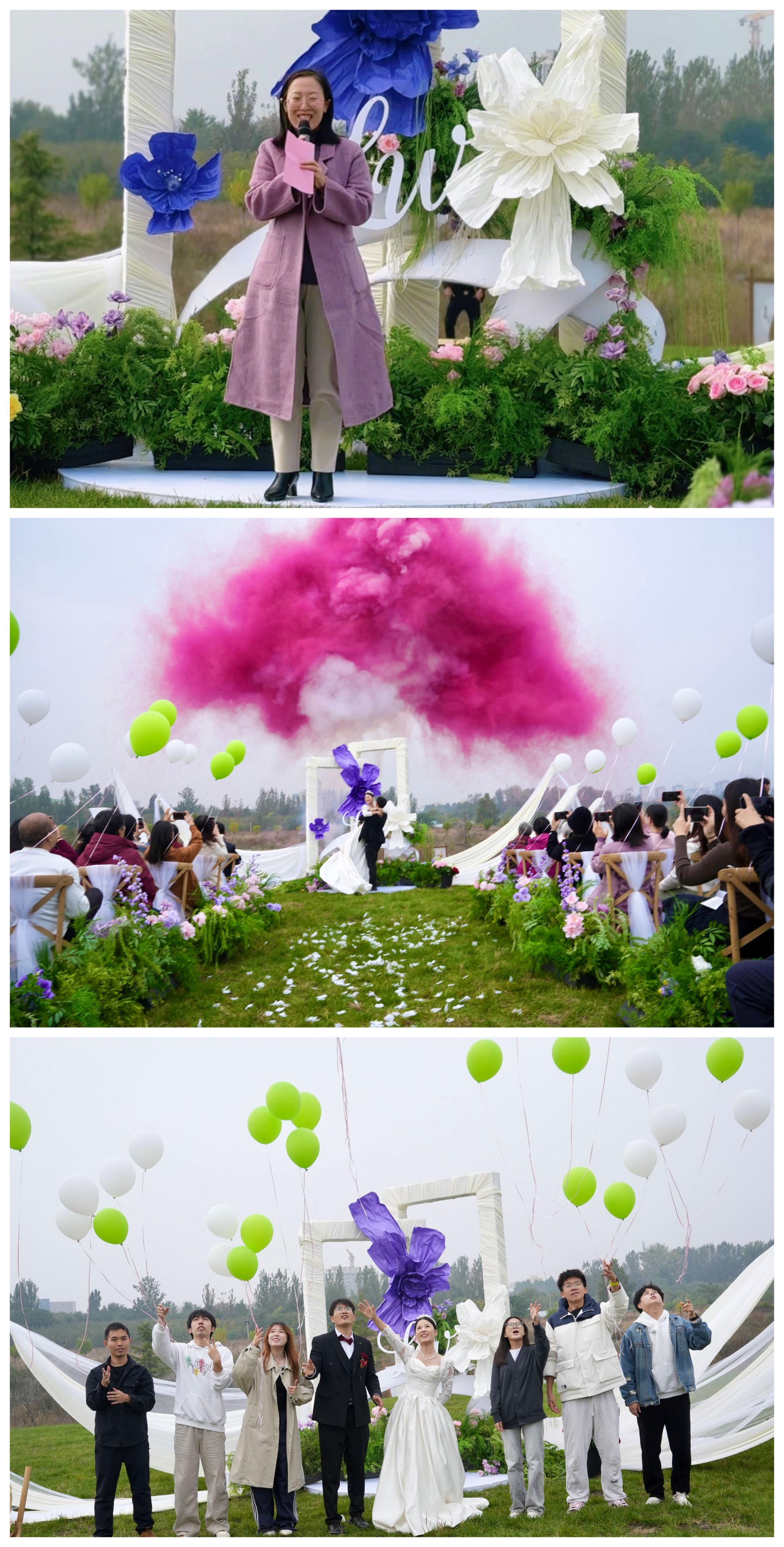 婚礼游园会顺利开展,婚礼仪式也在牛志萍院长的证婚下圆满礼成,当绚丽彩烟在天空绽放,当气球载着祝福升起,当宾客们抱着瓜果笑容满面,这场婚礼,有了比浪漫更深刻的意义。
