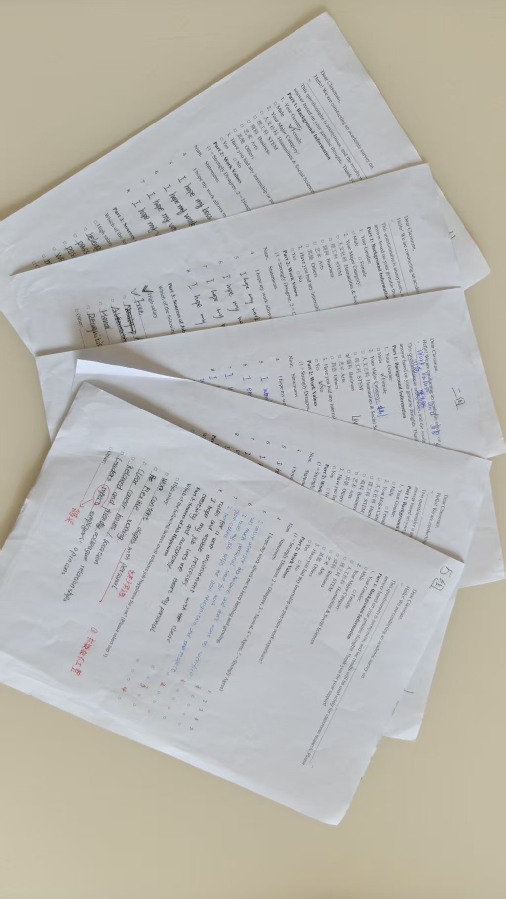 在此框架下,杨老师提供语言支持,鼓励学生用“My work aligns with my personal values.”“I have the freedom to decide how to complete my tasks.”“I am learning new skills in my current role.”“My colleagues respect my opinions.”具体的句子表达,提醒避免如“Are you happy?” 这样模糊或诱导性问题。学生分组后,选择不同职业进行针对性问卷设计:一组聚焦外卖骑手,问题如“Does your delivery algorithm allow time for rest or unexpected delays?”;另一组关注手工艺人,问“Do customers value the time you spend on details, or only the final price?”;还有小组对比程序员与教师,探讨“在重复性任务中如何保持热情”。