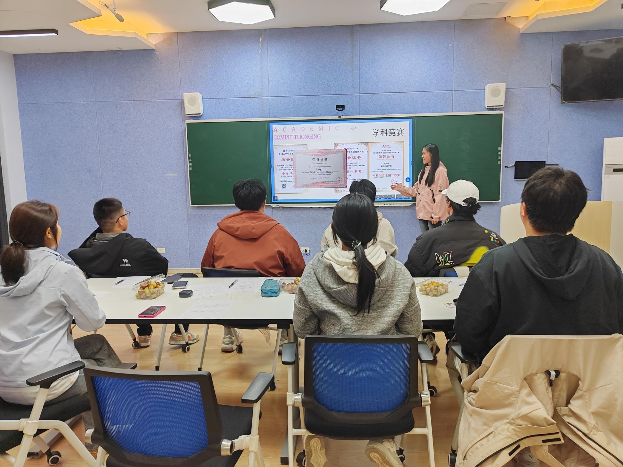 在同学们彼此熟络之后,活动进入了“经验传承”环节。张老师邀请了来自大二年级的王致远学姐,为新生们带来了一场干货满满的竞赛经验分享。致远学姐围绕学科竞赛、商科比赛和技能考试这三个维度展开介绍。随后,她向学弟学妹们提出了两点关键建议:一是提前规划,二是勤于反思总结。她以“如何寻找竞赛渠道”和“备考计算机二级的时间安排与学习方法”为例,鼓励大家把握住大一阶段相对充裕的时间窗口,主动掌握多项技能,不断丰富自己的人生履历。最后,她以“你只管做,剩下的交给时间”这句话与大家共勉。