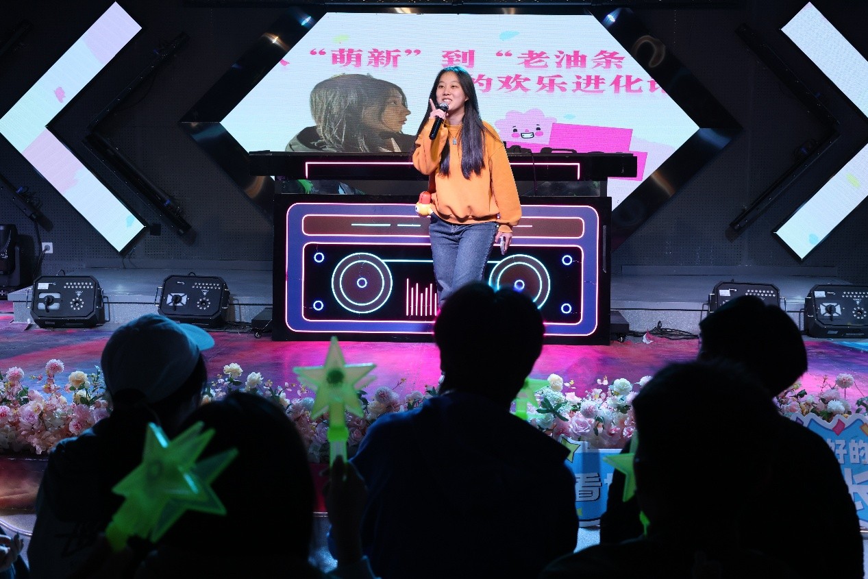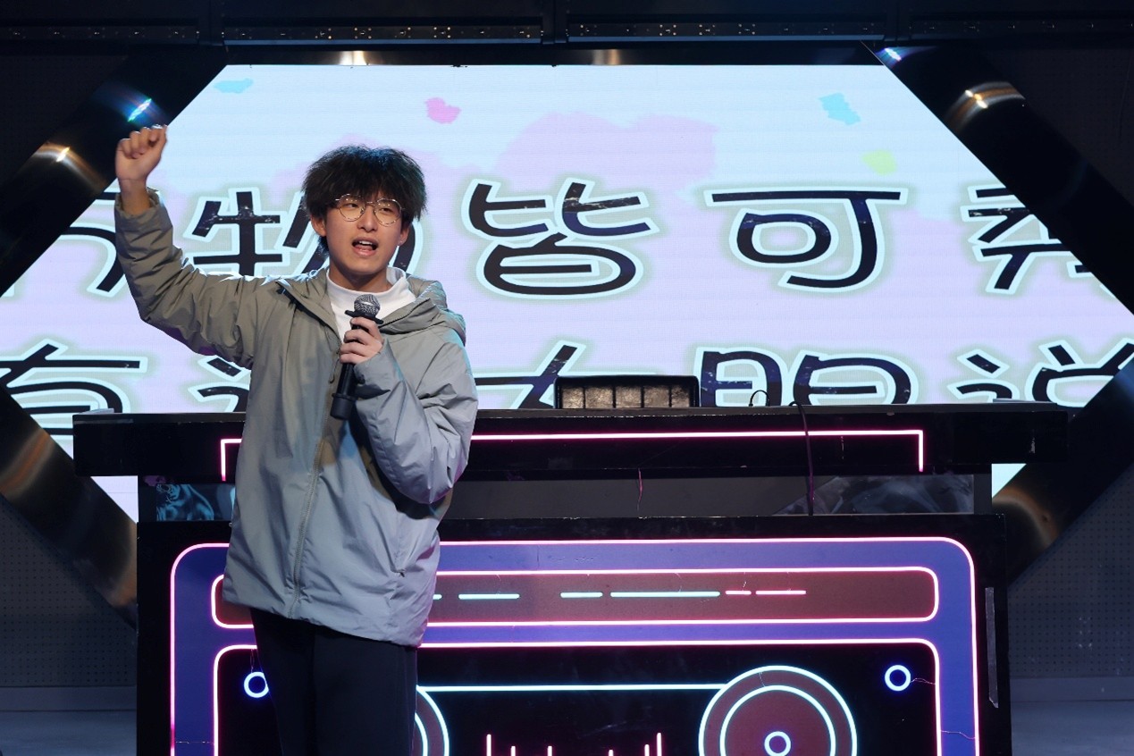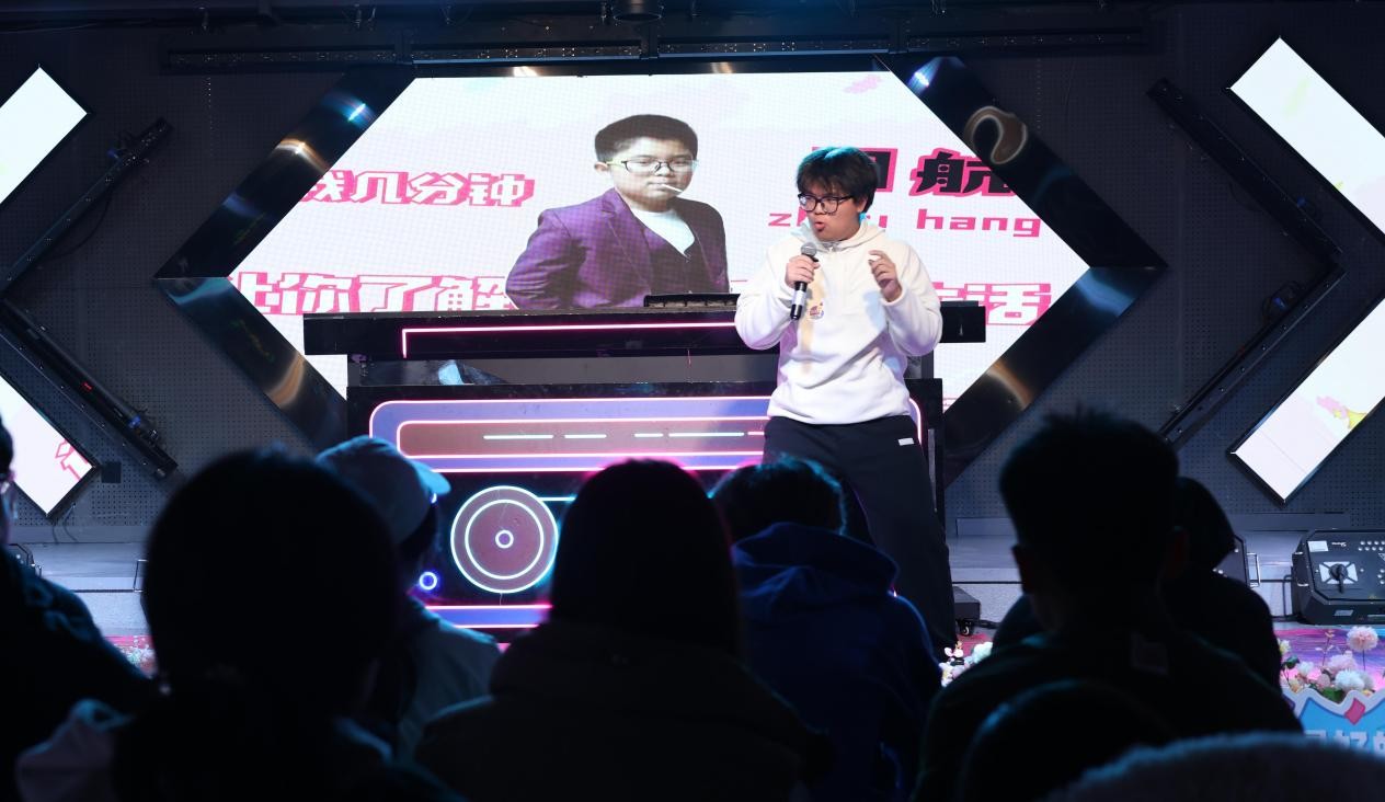 最后一位登场的陈星羽同学将脱口秀变成 “青春宣言现场”!从刚入学的懵懂 “萌新”,讲到现在的淡定 “老油条”,在最后用“把这四年过的热气腾腾、笑声满满”的快乐宣言将全场气氛推向高潮,赢得了观众们的欢呼声与掌声。
