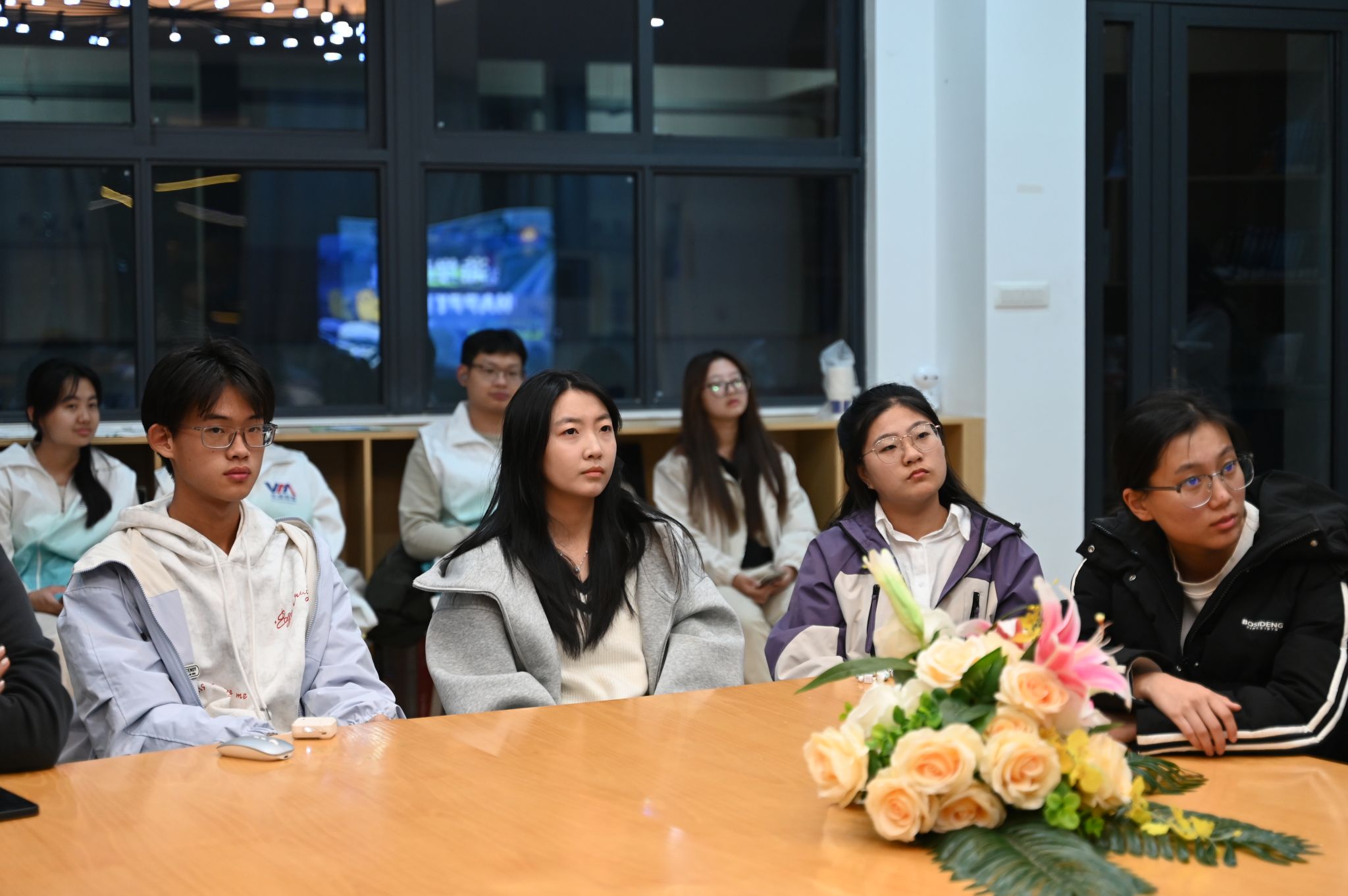在互动问答环节,同学们热情高涨,纷纷就海外交流流程等问题向学姐请教。学姐耐心细致的逐一解答,介绍了海外交流选拔流程以及在欧洲的花费等,并结合自身感悟给出实用建议。学姐也分享了自己对海外游学意义的理解:“这是一场关于成长的修行,从适应陌生环境到主动融入世界,每一步都在塑造更独立、更成熟、更有担当的自己。”