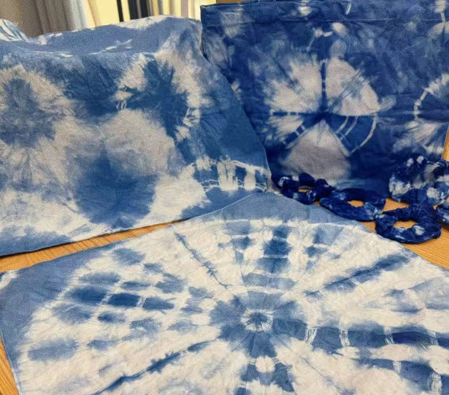 最激动人心的时刻终于到来——拆解线绳,展开作品。随着布料一层层打开,各式各样、绝无重复的花纹与图案跃然布上,如同花朵在方寸之间绚烂绽放。同学们看着由自己双手创造出的独一无二的作品,无不发出惊喜的欢呼,深切感受到了扎染工艺的随机之美与创造之乐。蓝色的染布如同旗帜,在秋日的微风中轻轻飘扬,与师生们脸上洋溢的满意笑容,共同构成了一幅生动而温暖的校园画卷。