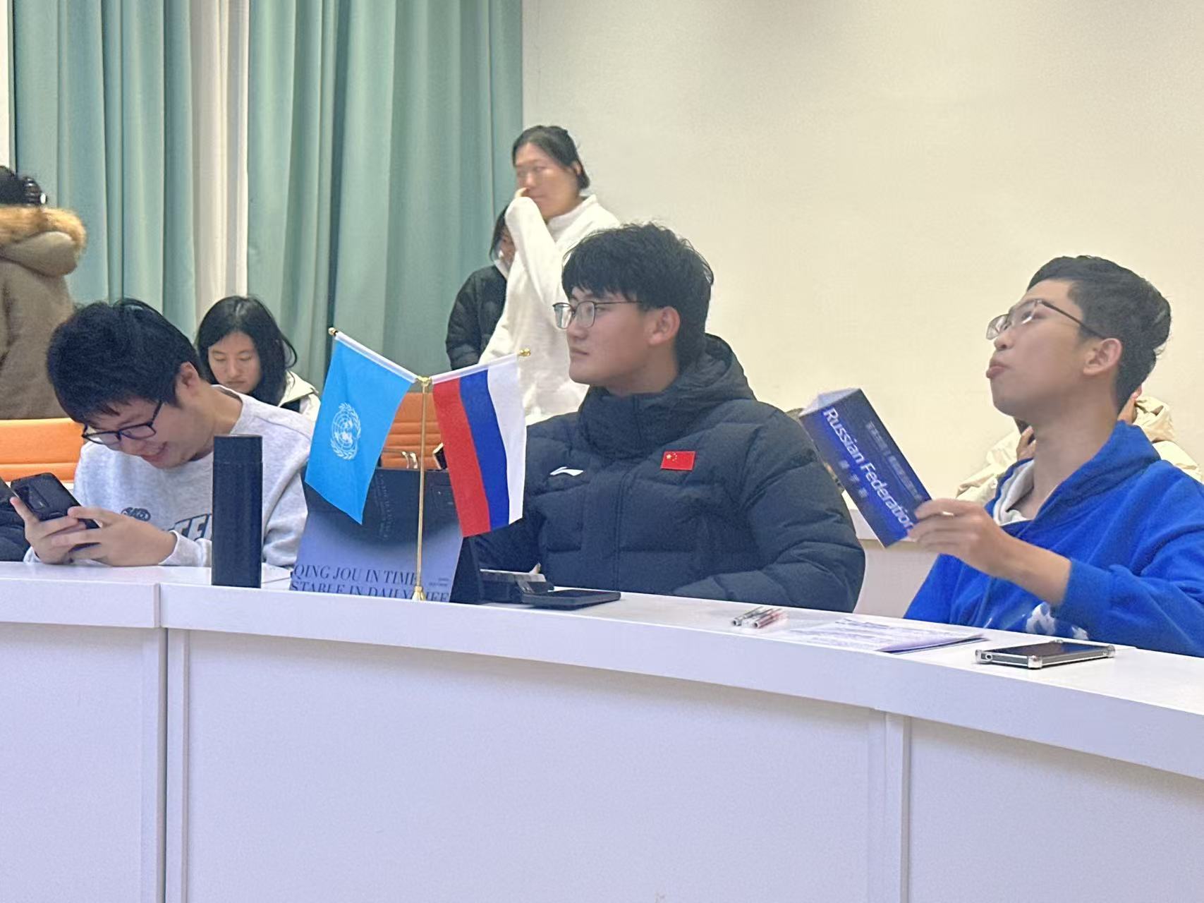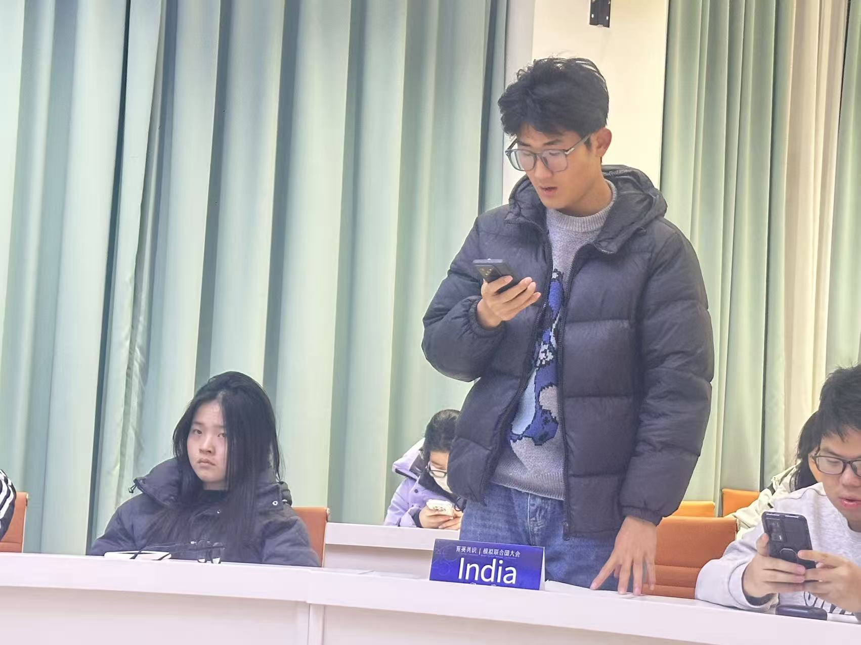 模拟联合国工坊在谭彭馨老师指导下成功举办以“气候变局下的跨国行动”为主题的模拟联合国大会。来自中国、美国、澳大利亚、俄罗斯、印度、肯尼亚、智利、日本等国的代表齐聚一堂,围绕“共解气候变化导致的生态难题”这一主题展开“气候责任分担机制”“绿色技术合作路径”“生态脆弱地区援助”等多个方面的讨论、多轮磋商与辩论。会议现场气氛热烈,代表们在交锋中探寻共识,在辩论中凝聚方向。