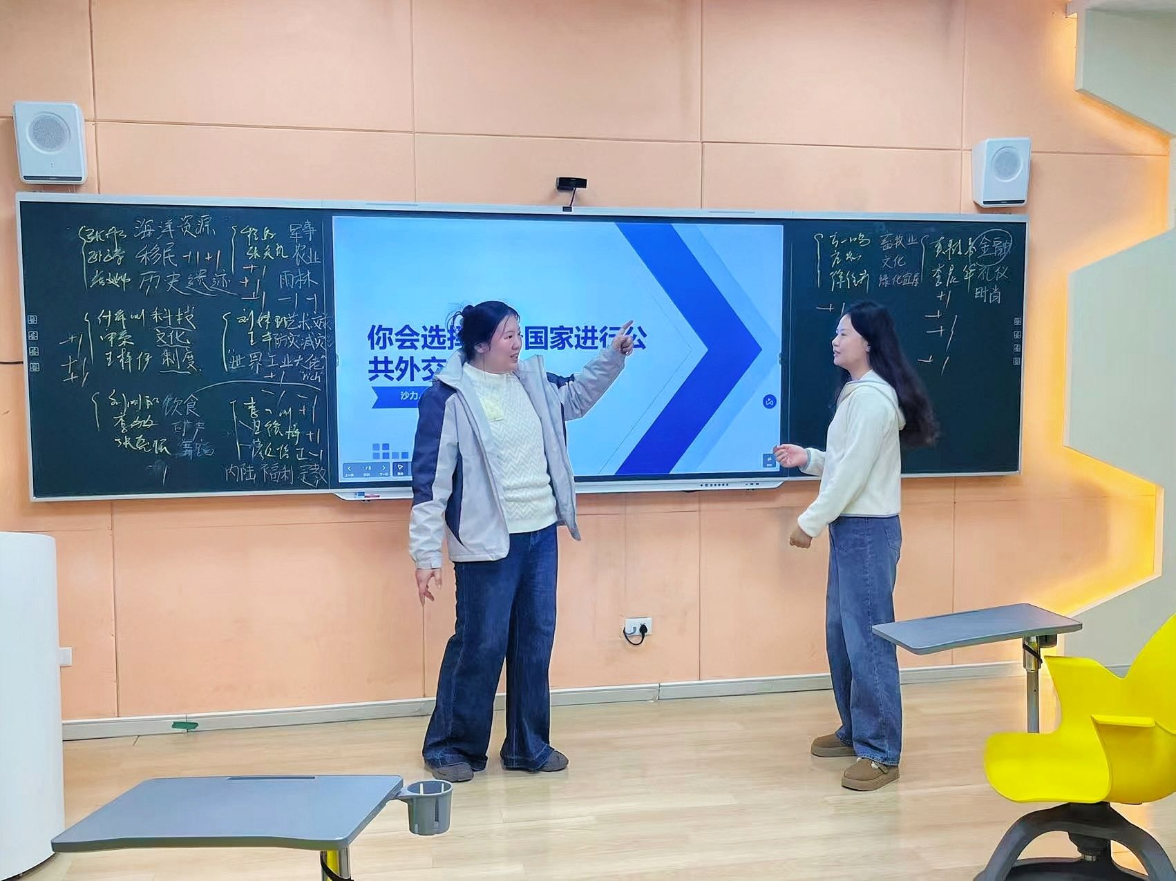 为打破学科壁垒,培养学生跨学科思维与全球视野,近日,“全球视野下的公共外交”课程与“组织行为学”课程开展双师联合教学活动。谭彭馨老师与沙力老师携手合作,以国家特点与国家组织为核心设计教学环节,通过趣味抽签、理论联结、实践研讨的形式,让学生在全球化背景中探索组织行为与公共外交的深度融合,为学生搭建起跨学科知识应用的实践桥梁,助力其理解全球治理中的多元协作。