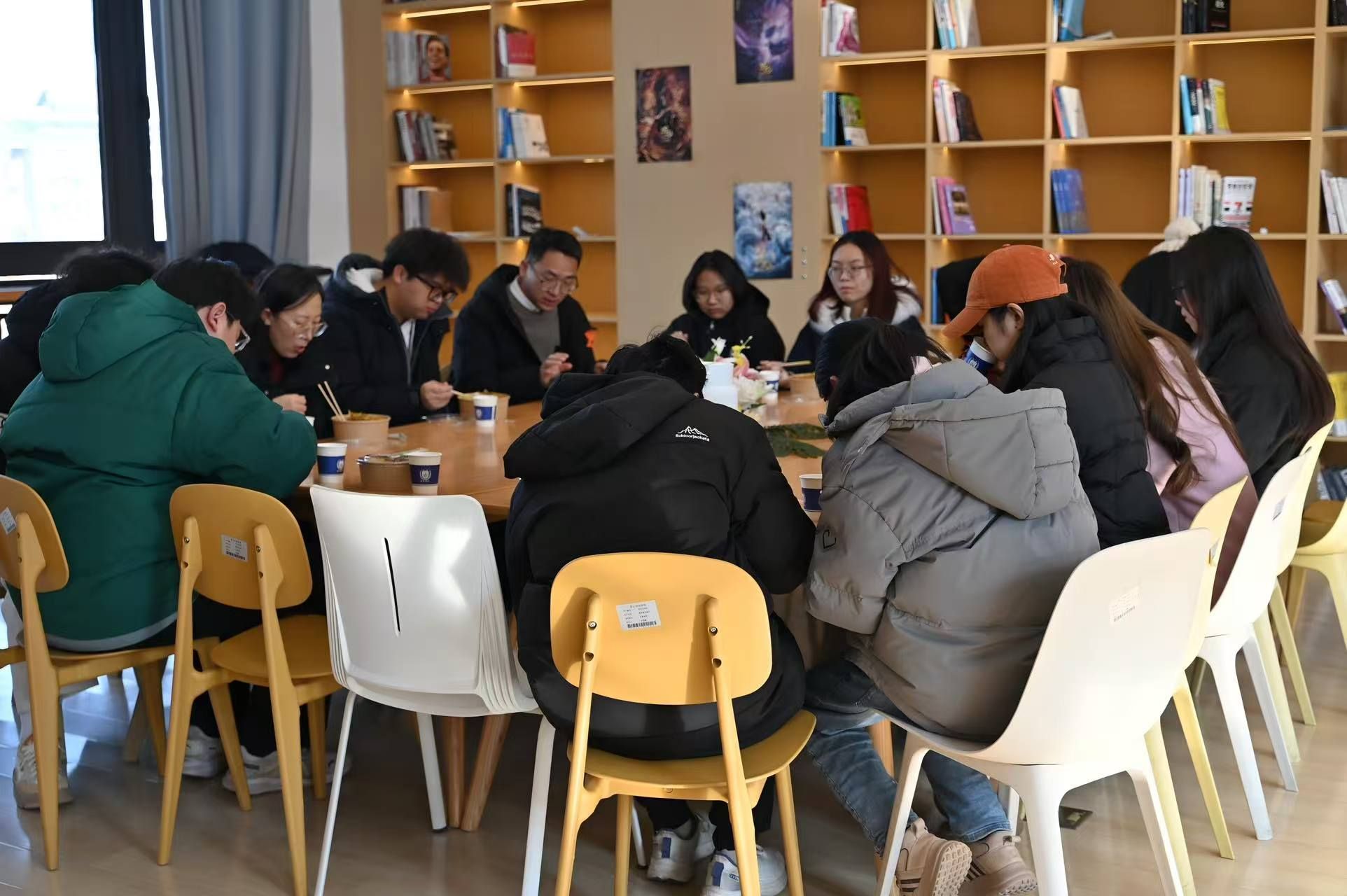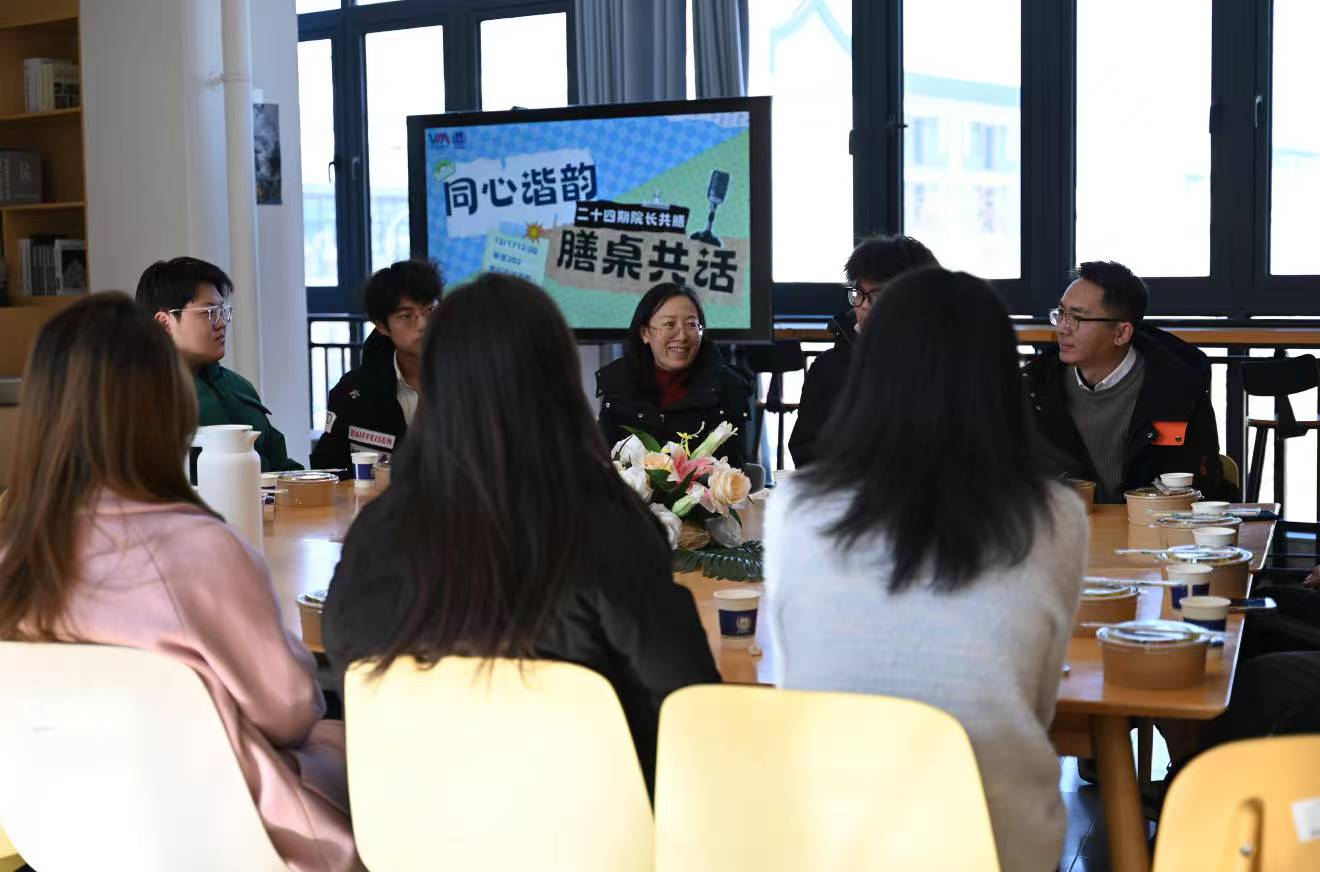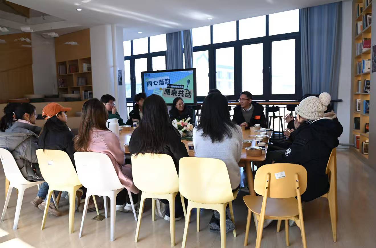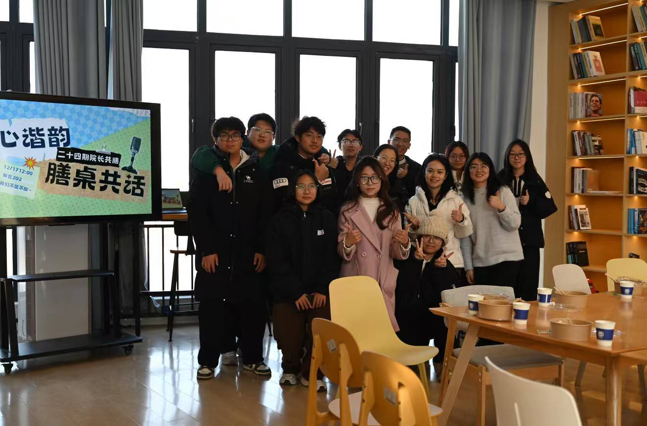 “新言书院202室今天中午菜香四溢,但比饭菜更诱人的,是餐桌上流淌的歌声故事与未来畅想。”12月24日中午12点,新言202室摇身一变,成为温馨的午餐交流厅,院长、导师与合唱比赛获奖师生围坐一堂。