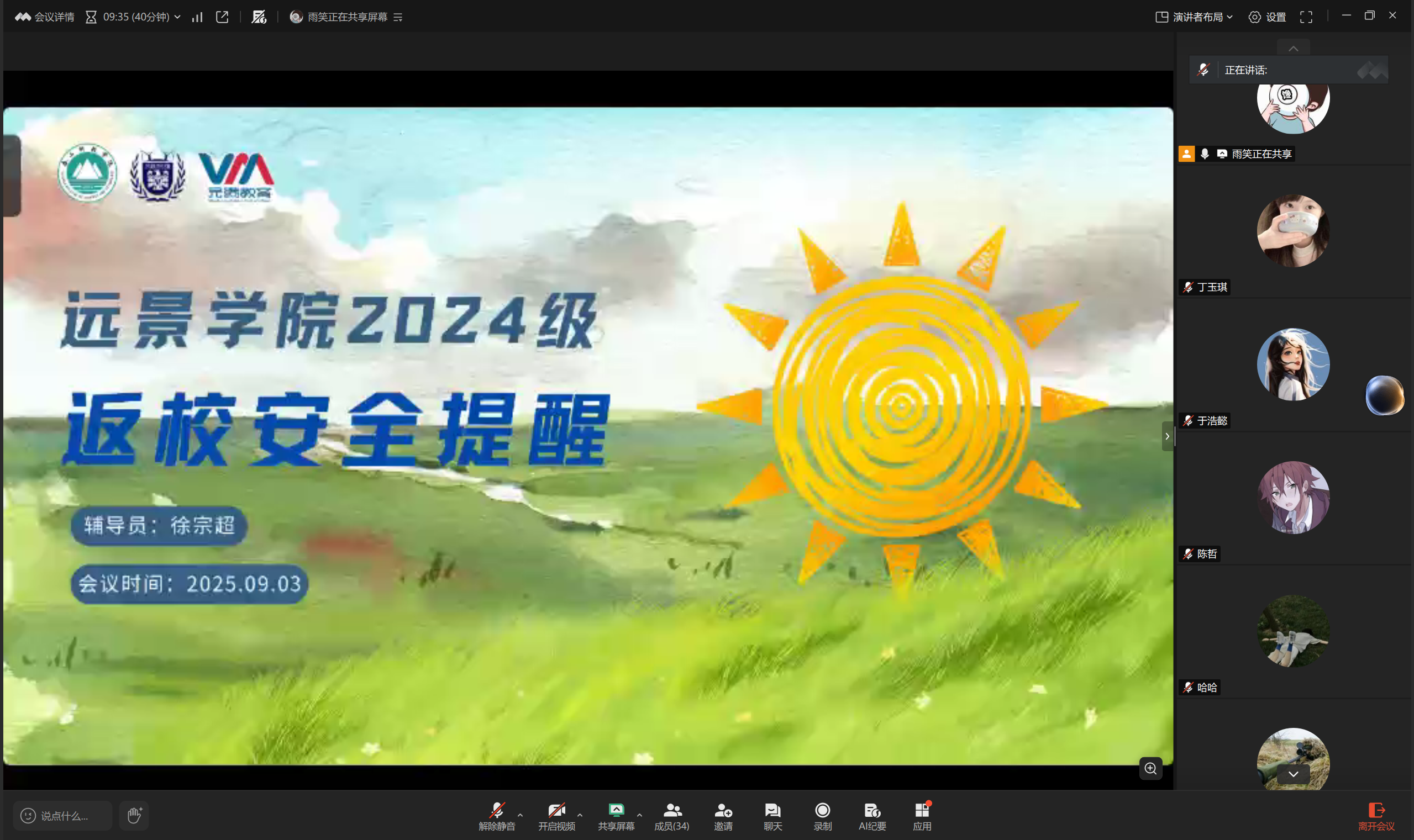 “平安返校不仅是学校的期盼,更是每一位学生的责任。”此次年级会不仅增强了学生的安全意识和自我防护能力,也体现了学院对学生深切的关怀。远景学院将持续做好学生返校前后的服务与保障工作,全力营造安全、和谐、有序的校园环境,助力学子在新学期扬帆起航、再创佳绩。