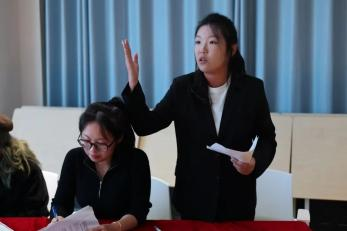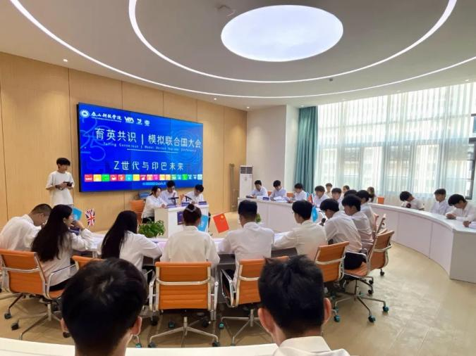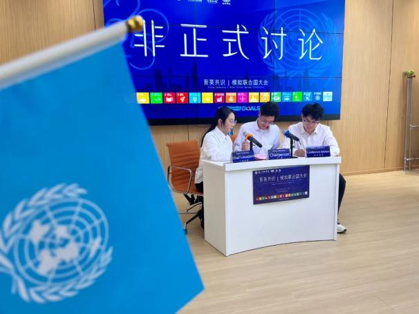 在育英202会议室里,模拟联合国大会正热烈上演。穿西装的同学举着国家牌激烈辩论,电子白板上写满提案修正案,连空气里都飘着外交谈判的紧张感,但额角的汗挡不住眼里的光。有人急得起身比划,有人埋头查资料反驳,计时铃音像心跳般急促。原来自己的声音,也能在世界议题里被认真倾听。