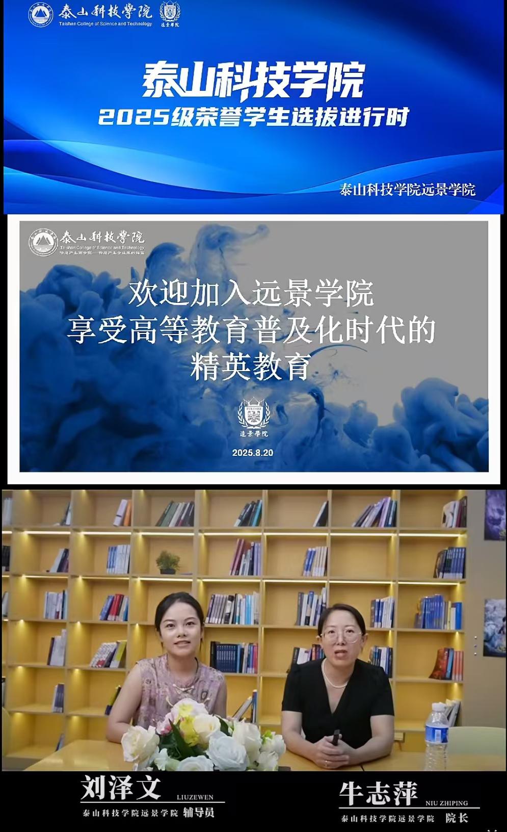 8月28、29两日,根据《泰山科技学院2025级荣誉学生选拔章程》,2025级荣誉学生选拔采用线上面试的方式进行。