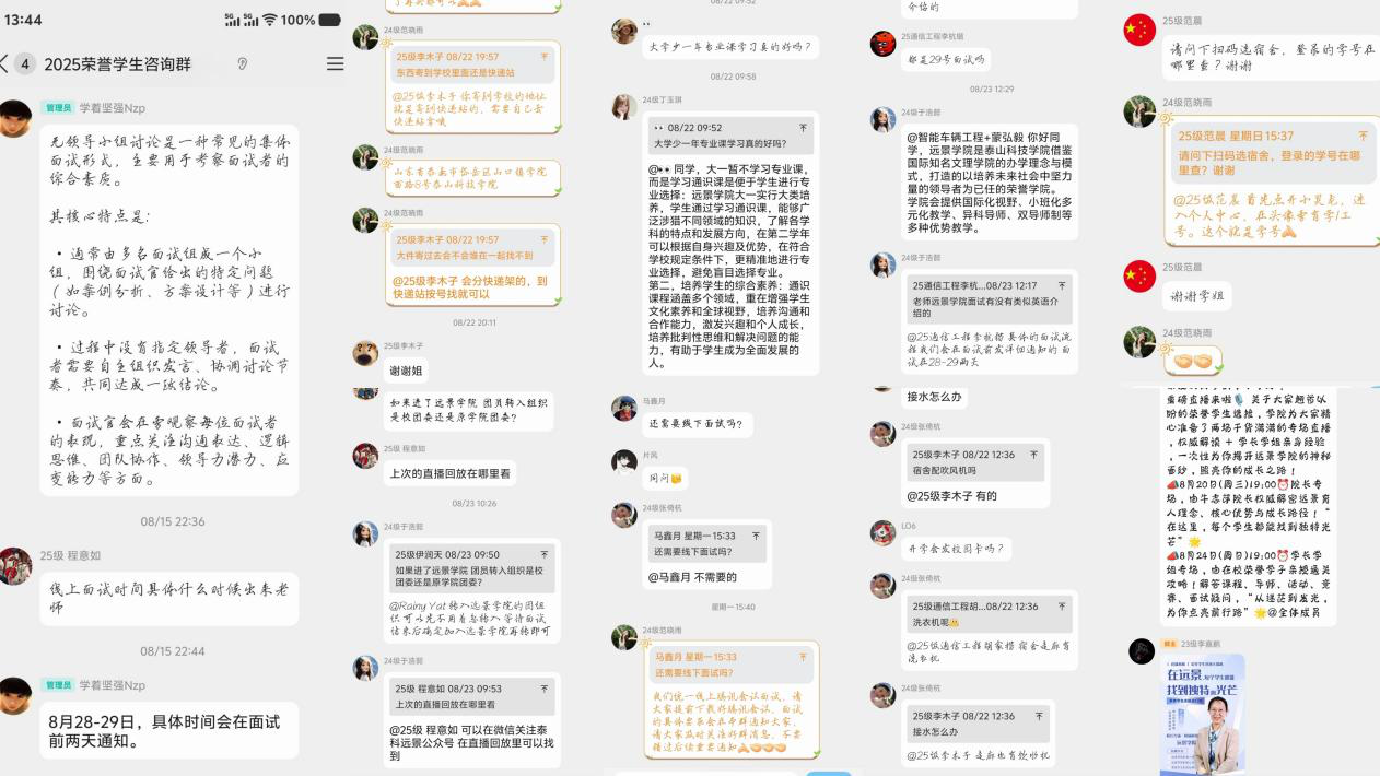 与往年不同的是,本次面试时间总体延长至两天进行,为参与选拔的同学们提供了更加充裕的时间和机会展示自己。在2025年选拔面试的舞台上,本届荣誉学生群体也不负所望,他们有的感兴趣于学术领域,有的对人文艺术怀揣炽热追求,展现出了独属于每个人的光芒和新一届学子的风采。