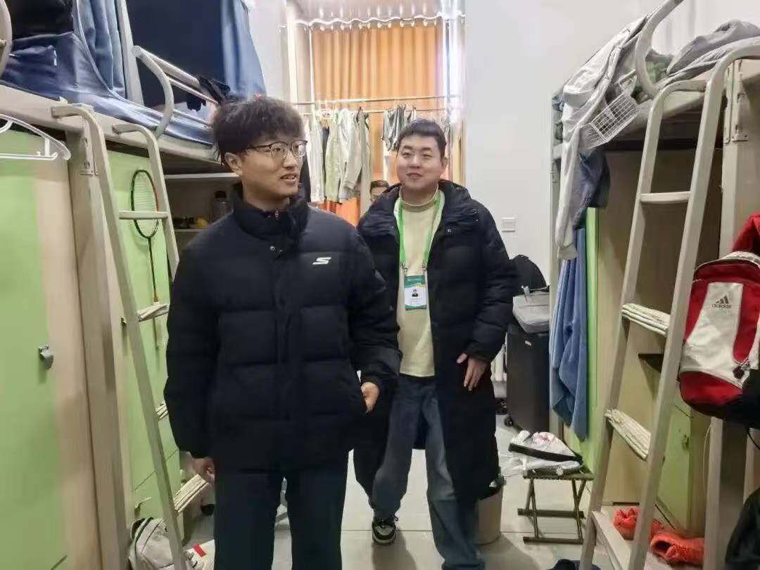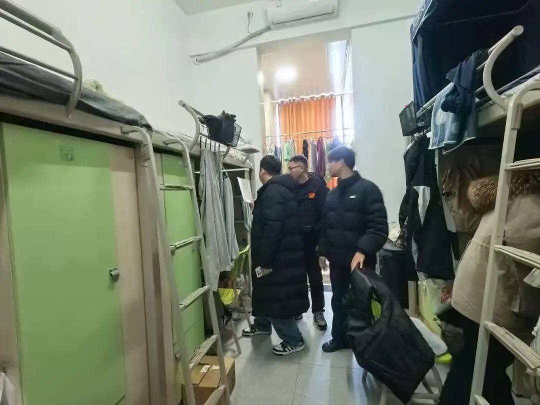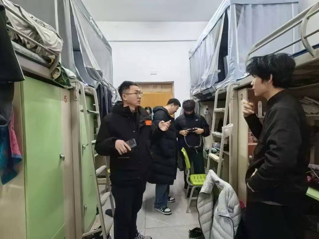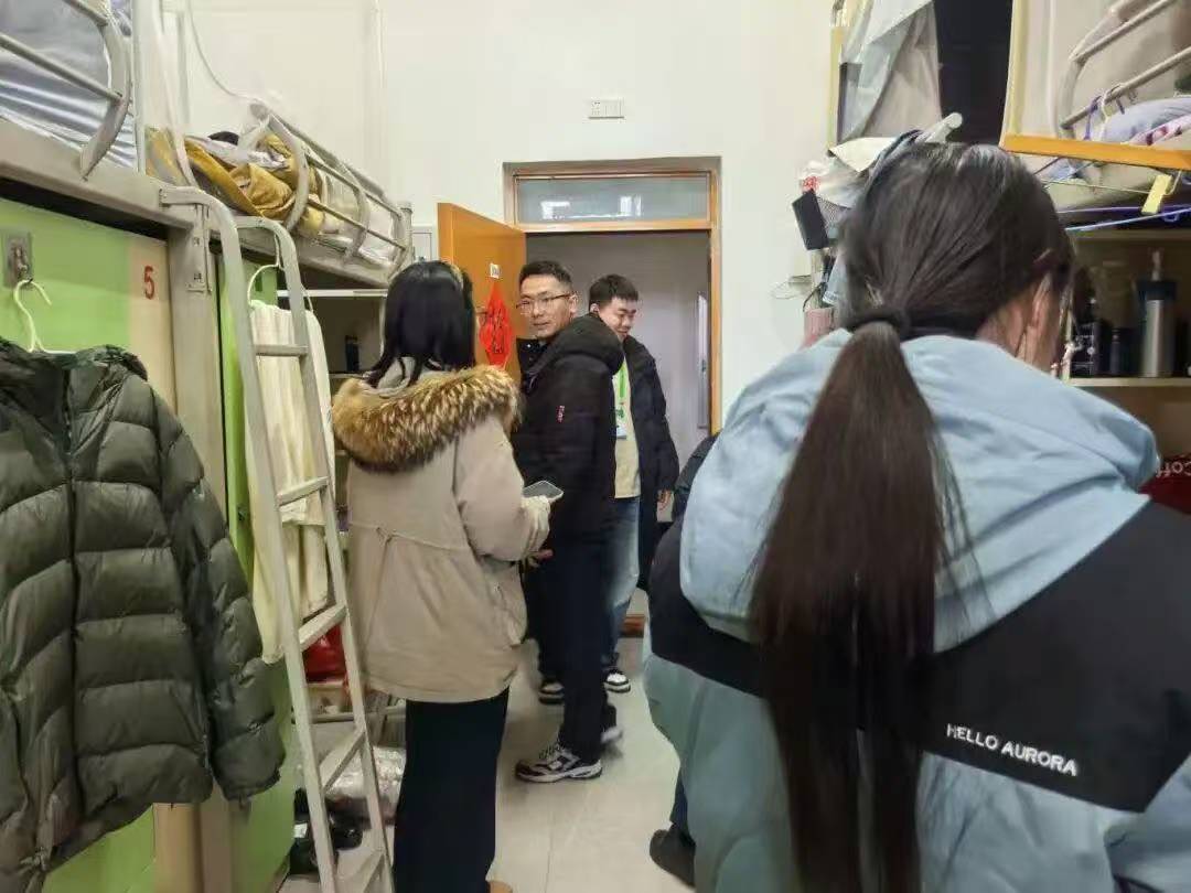 12月15日,检查队伍来到汶阳书院C栋,重点走访了25级远景学生宿舍。这次走访打破了常规检查的框架,成为深入的互动交流。老师们穿梭于各个宿舍,和同学们围坐交谈,细致询问学习生活情况,认真倾听大家关于宿舍生活的困惑与建议。