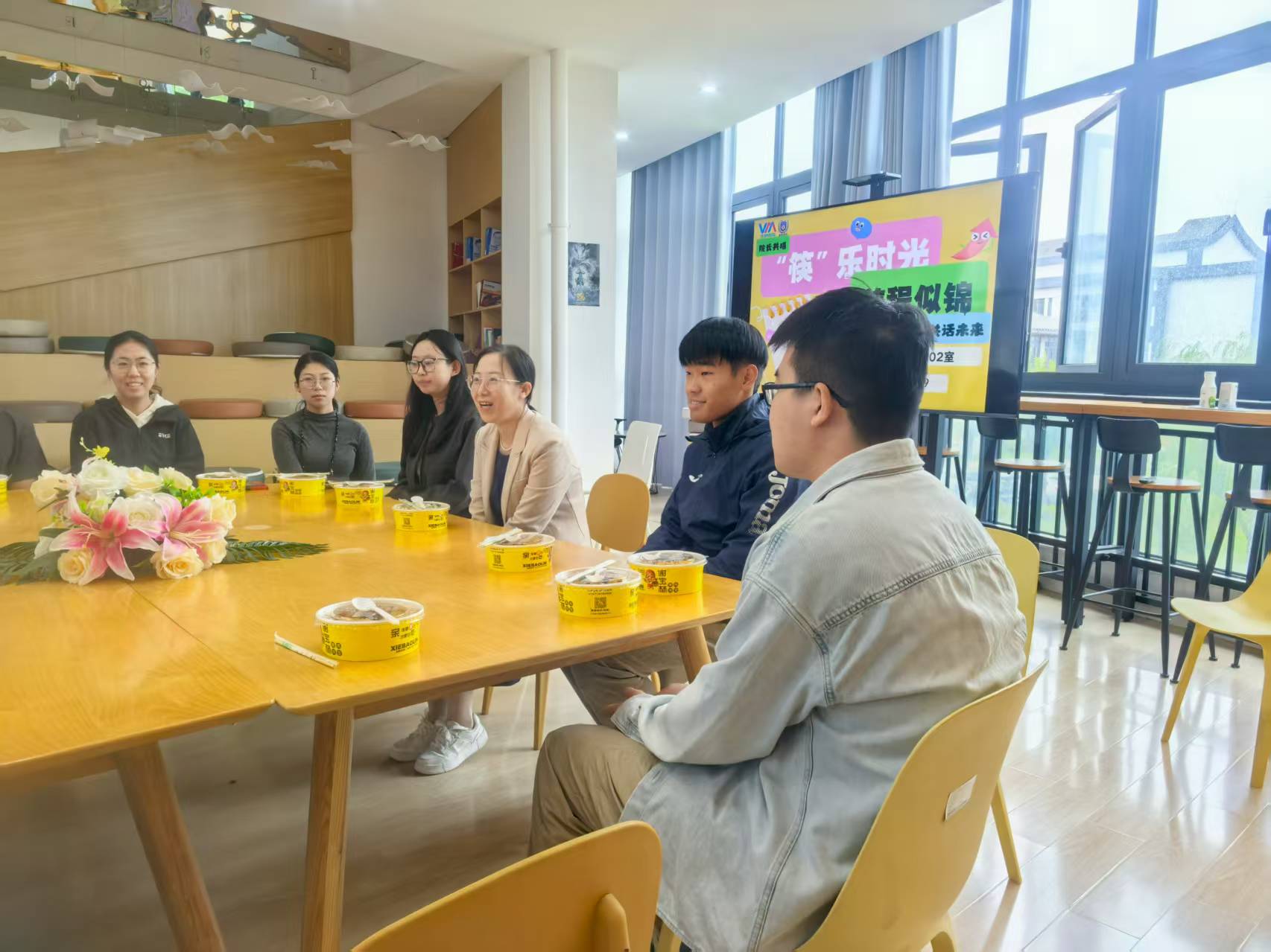 2025年9月19日中午,远景学院在新言书院202室举行了一场温馨而富有意义的院长共膳活动——“‘筷’乐时光,前程似锦”。这不是一顿普通的午餐,而是一次温暖的相聚,一次真诚的对话。2022级的准毕业生们与院长、老师们围坐在一起,边吃边聊,话题从考研、就业到人生选择,轻松中透着深思。