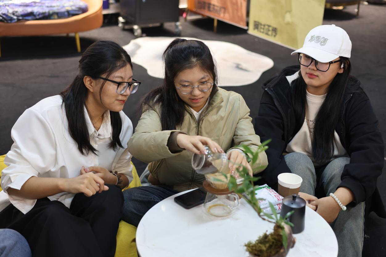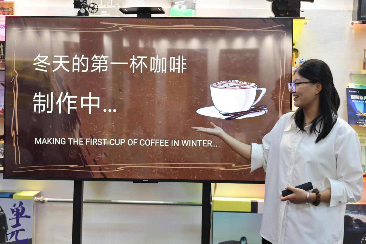 随着磨豆机轻声运转,咖啡豆碎裂时发出清脆的声响,下落的咖啡粉散发出浓郁的香气,顷刻间弥漫了整个空间,引得同学们纷纷惊叹,原来新鲜的咖啡粉竟有如此迷人的香味!