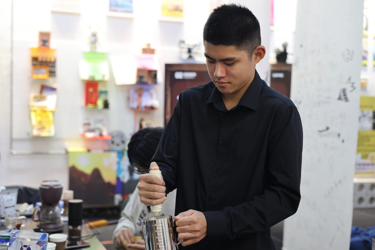 理论学习告一段落后,活动迎来了高潮迭起的亲手实践环节。汶阳113瞬间变身为一个生机勃勃的小型咖啡工坊,研磨声、蒸汽声、惊叹声与欢笑声交织成一首动听的劳动交响曲。