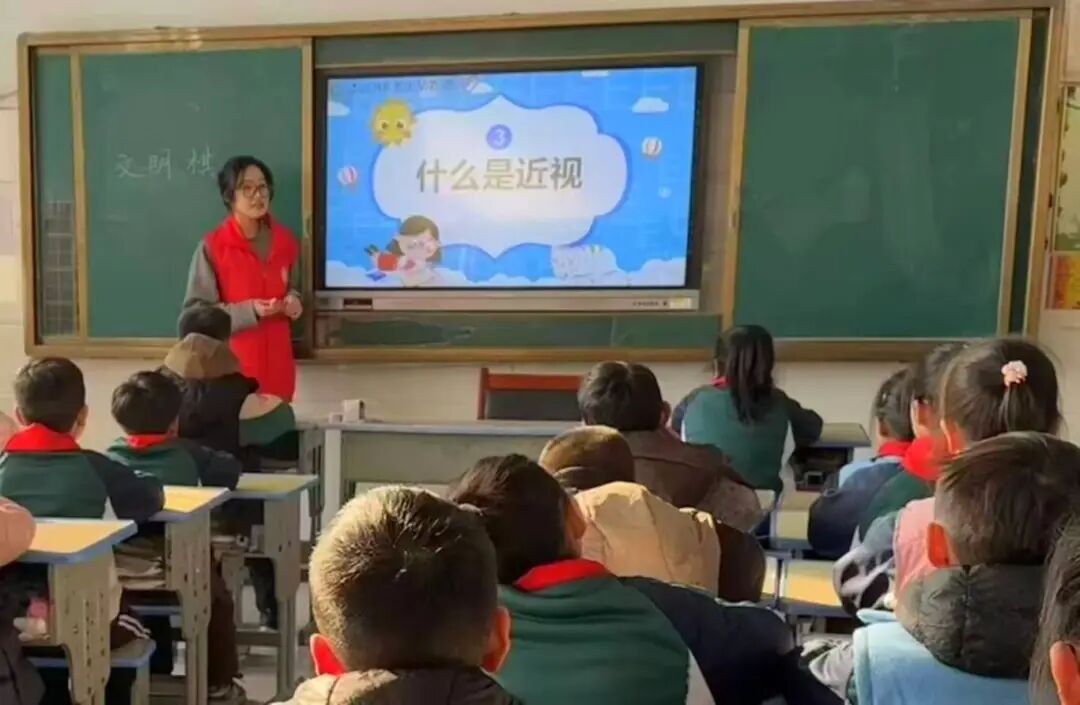 “看动画20分钟要休息多久?”“胡萝卜和辣椒谁是护眼冠军?”“眼睛最爱哪种运动?”知识问答环节,PPT上的趣味题目接连抛出,孩子们举手如林、抢答不停,答对者收获“护眼徽章”,答错了也认真记下正确答案。