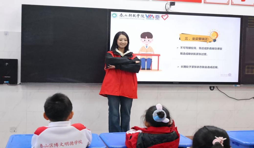 凛冬时节,泰山科技学院远景学院青年志愿者协会的“晒护眼收获,亮明眸风采”主题公益活动,在博文明德小学温情启幕。志愿者化身“护眼小老师”,通过趣味课堂、互动问答、实操练习等丰富形式,为小朋友们普及护眼知识、培养良好用眼习惯,用青春力量守护孩子们的明亮未来。